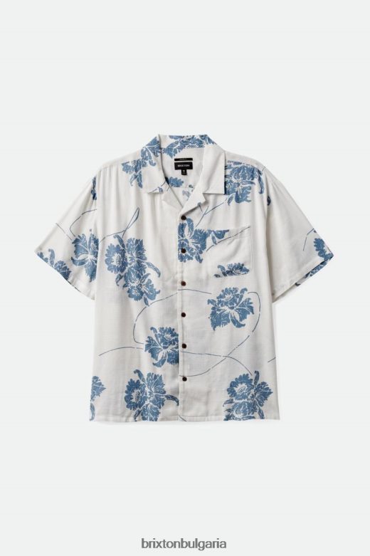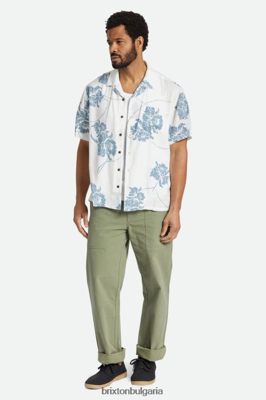Brixton мъже bunker slub s/s тъкана риза H002T44 облекло мръсно бяло/прашно синьо