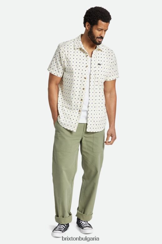 Brixton мъже чартърен печат s/s тъкани H002T48 облекло бяла/слама/тъмна земя