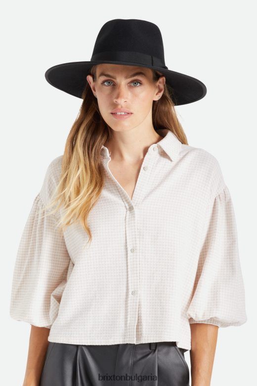 jo rancher е добре балансирана шапка с широка периферия, деликатна щипка и капковидна гънка. направен от структуриран и устойчив вълнен филц, той е изискан избор за събития на открито и ежедневие. завършена с фина grosgrain лента и метална плоча за шапки.