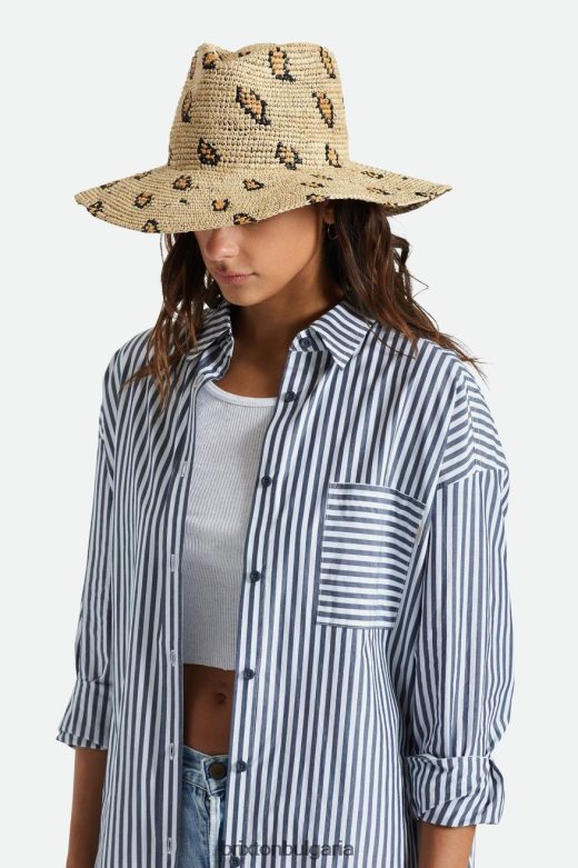 Brixton Жени плетена сламена шапка от мадера H002T4507 аксесоари естествен леопард